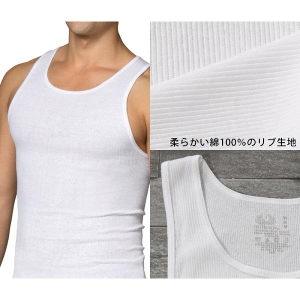 コットン100% リブ編み ロング丈 の 白 タンクトップ 6枚セット