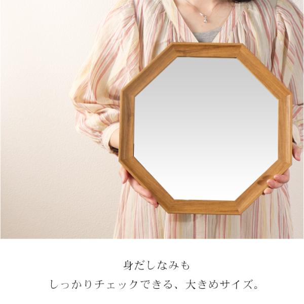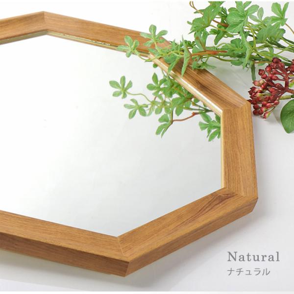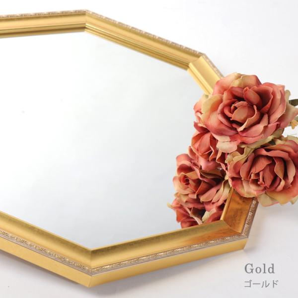 八角形 壁掛け 鏡 玄関 風水 幸運 ウォールミラー Lサイズ インテリア 玄関鏡 化粧鏡 壁掛けミラー 開運 縁起 日本製 ゴールド ウッド