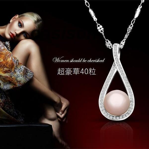 ネックレス レディース 一粒パール 真珠 超豪華40粒 雫 天然貝パール プラチナ仕上げ シルバー925 女性 妻 嫁 母 クリスマスプレゼント