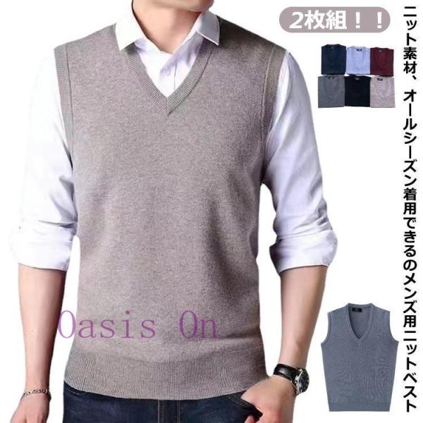 【2枚組】 ベスト メンズ 春夏 夏用 黒 ネイビー ニットベスト メンズ ショート丈 ニット セーター ベスト プルオーバー フォーマル Vネック