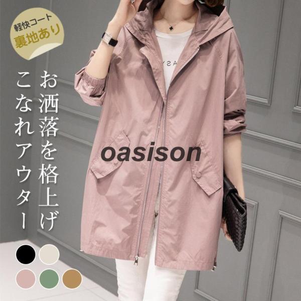 マウンテンパーカー レディース トレンチコート 春秋アウター ブルゾン フード付き 羽織り ジャケット 裏地あり ミディアム丈 ライトコート