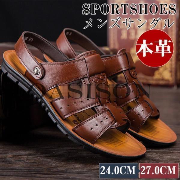 サンダル メンズ ビーチサンダ レザー 2way リアルレザーサンダル 滑り止め 吸汗防臭 オフィス 水陸両用 アウトドア 父の日 ギフト 夏