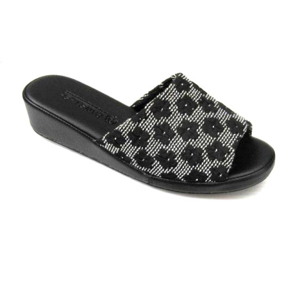 【送料無料】 ジャガード織 ヒールアップ パンタロン スリッパ パンジー9335 黒 ルームシューズ 婦人 レディース 室内履き 事務所履き オフィス履き サンダル