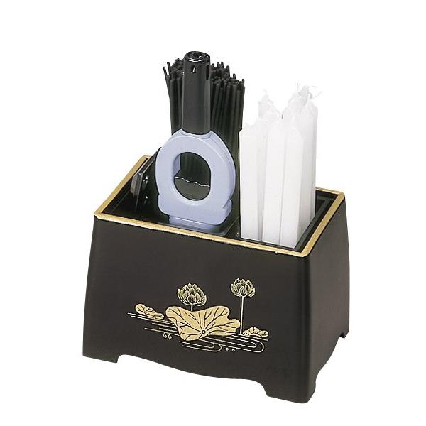 線香 ローソク立て マッチ消し付 黒蓮 5型DX4点セット