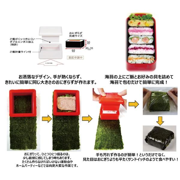 ●お洒落なデザイン、手が熱くならず、きれいに簡単に同じ大きさのおにぎらずが作れます