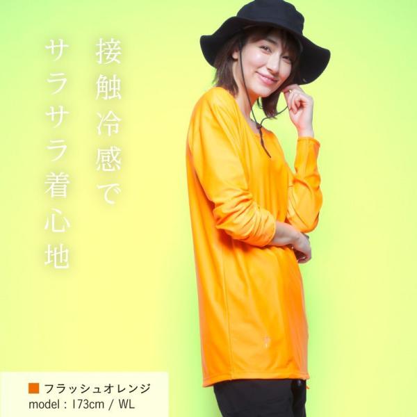 ラッシュガード レディース オーバーサイズ 長袖シャツ フードなし ロング丈 長め サップ SUP 蛍光色 オレンジ 水着 体型カバー 大きいサイズ IF-140