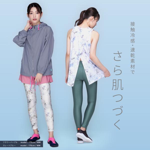 ランニングウェア ジムウェア サップ UVカット 紫外線対策 UPF50+ ボトムス 伸縮 ストレッチ ひんやり 無地 シンプル タイダイ 花柄 ブルー ワイン ピンク ブラック 黒 グレー ヨガパンツ