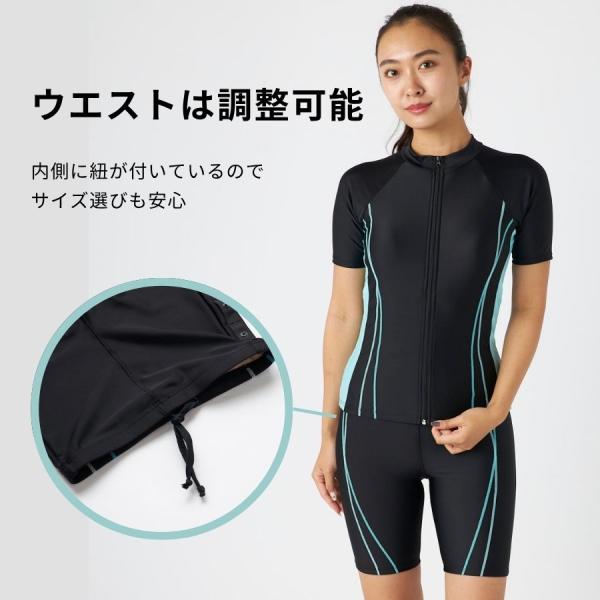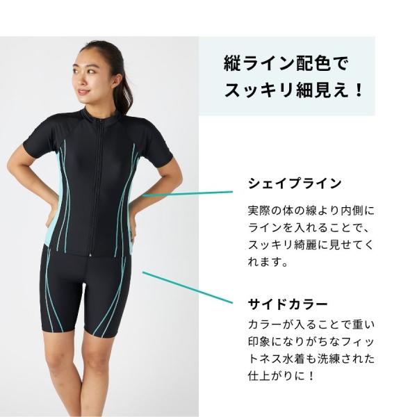 フィットネス水着 レディース 体型カバー半袖 セパレート 大きいサイズ タンキニ おしゃれ 50代 40代 30代 競泳水着 パッド付き 316182n