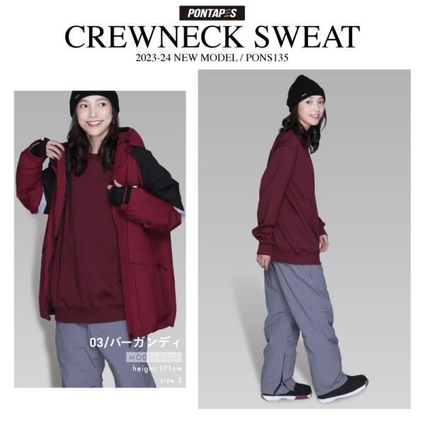 スウェット メンズ レディース スノーボード スキー スノボー クルーネック インナー ウェア スキーウェア 撥水 裏起毛 防寒 トレーナー インナー 無地 PONS-135