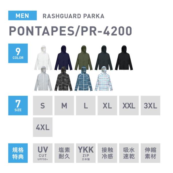 ラッシュガード メンズ 長袖 パーカー UPF50+ UVカット率98% 水着 体型カバー 水陸両用 紫外線対策 大きいサイズ UVカット フードあり UPF50 PR-4200 OUV