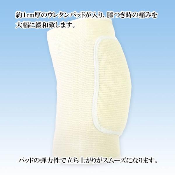 膝あてのふくらみ部分には約1cmのウレタンパッドが入っており、膝をつくお稽古事、仕事に最適です。