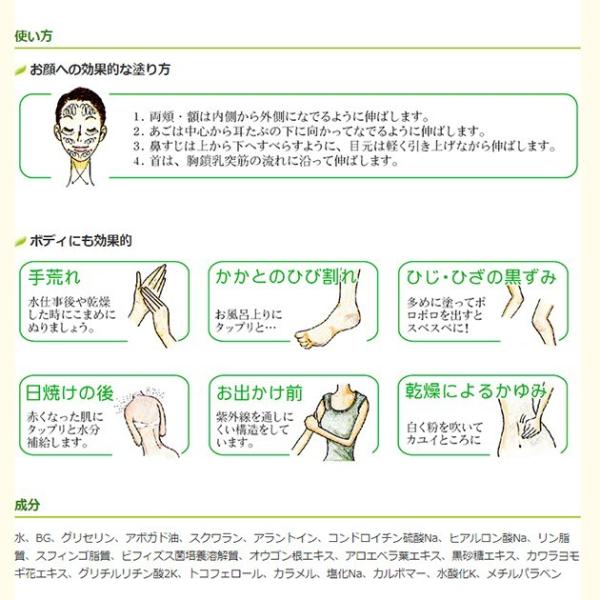 80%のお水と14種類の天然由来成分が皮膚呼吸を妨げず「うるおい」をキープ、お肌になじみの良いゲル状ですので素肌感覚のつけ心地。