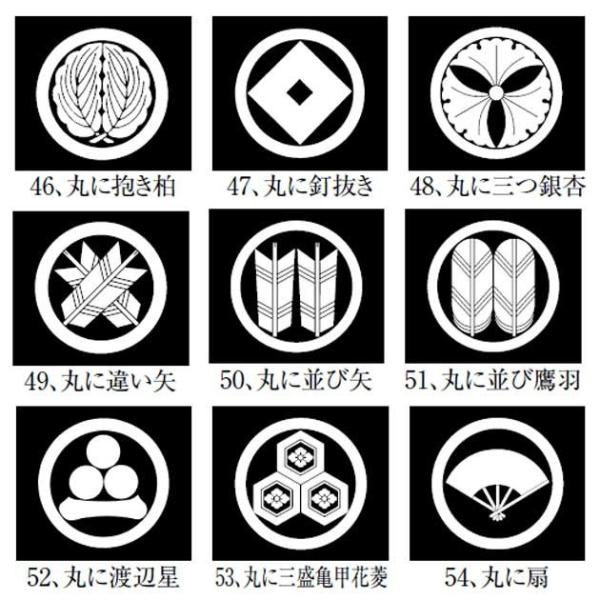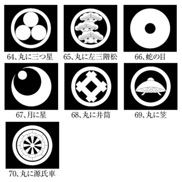 貼り紋 男紋 黒地着物(きもの)用 家紋シール 6枚 No.37〜No.70 こちらは黒地着物用です。