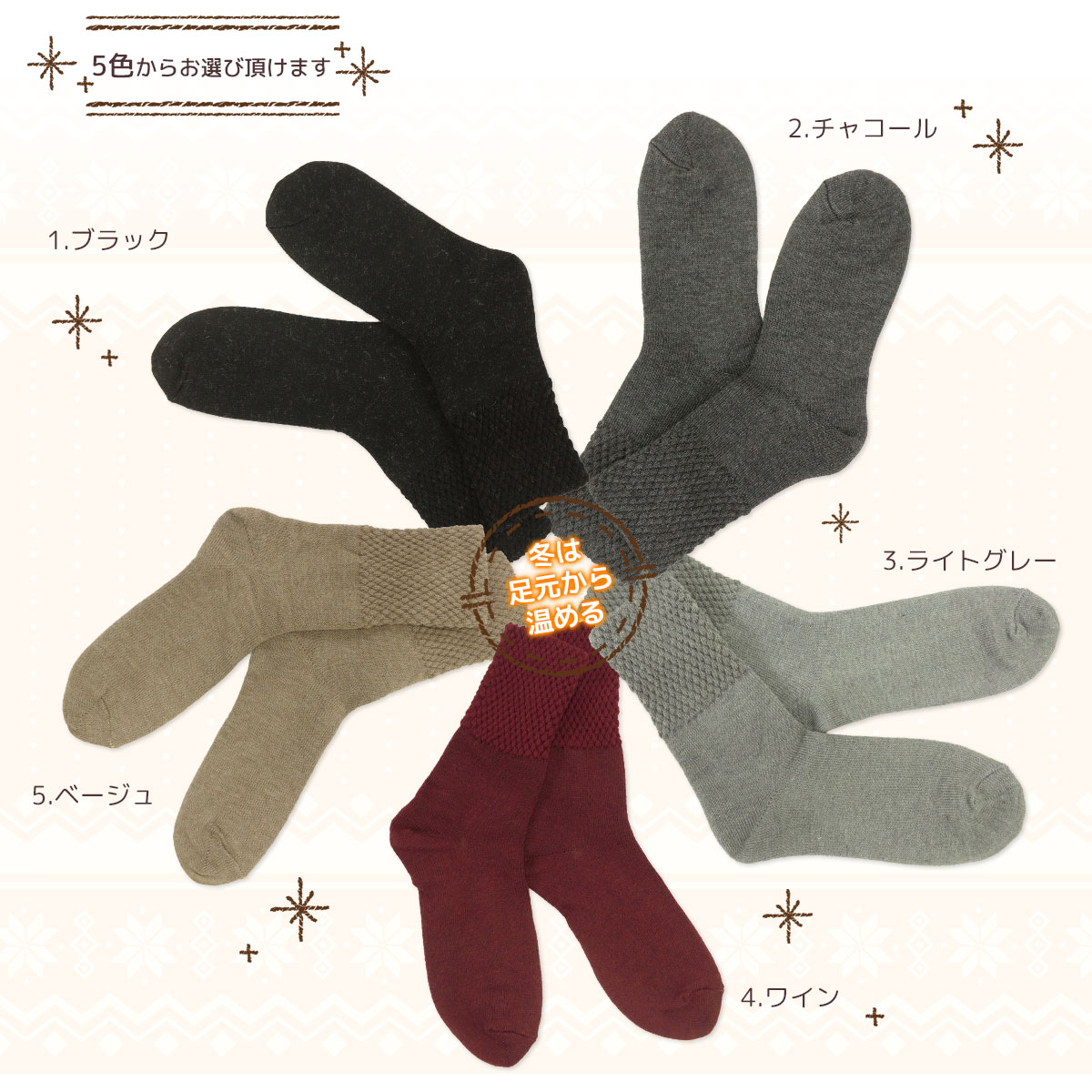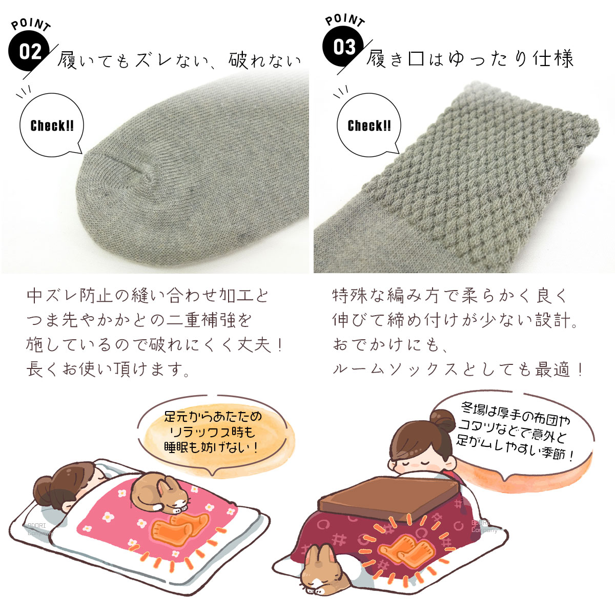 内側天然絹使用の特殊加工、二重編み構造で足元あったか