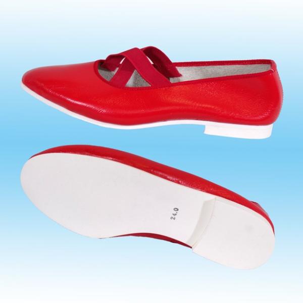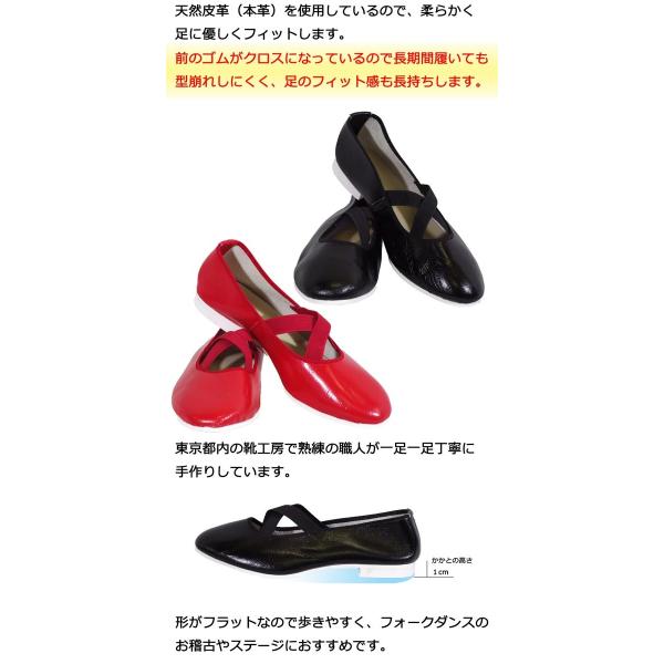 フォークダンスシューズ [幅:標準(21cm〜26cm)] クロス 黒 赤 日本製 本革 ハンドメイド スクエア・フラダンスシューズ