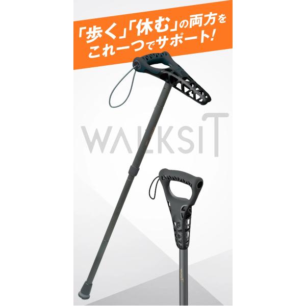 WALKSIT ウォーキングステッキ 椅子になる杖 座れる杖 チェア一体型 杖 一本杖 一脚杖 スツール 椅子 イス トレッキングポール ワンタッチ 折り畳み 折りたたみ