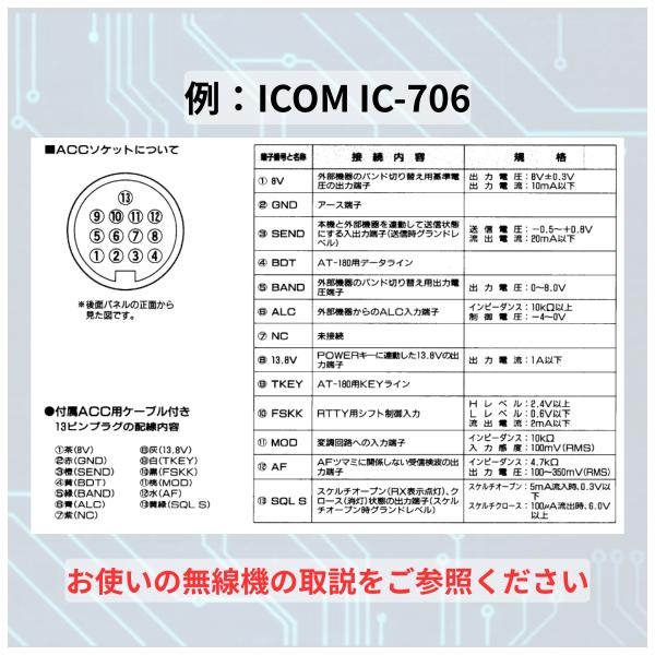 IC-7300、IC-9700等の背面「ACCソケット(13ピン)」に適合する