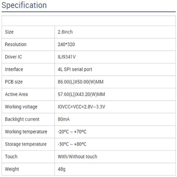 2.8インチTFT LCDディスプレイ タッチスクリーン付きは、