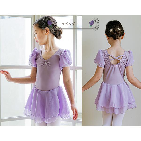 バレエレオタード 子供用 スカート付 薔薇のお袖
