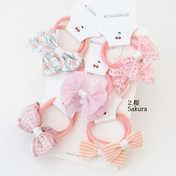 リボン付ヘアゴム10本セット リボン4cm 子供用 シフォンリボン かぎ針編みリボンなど