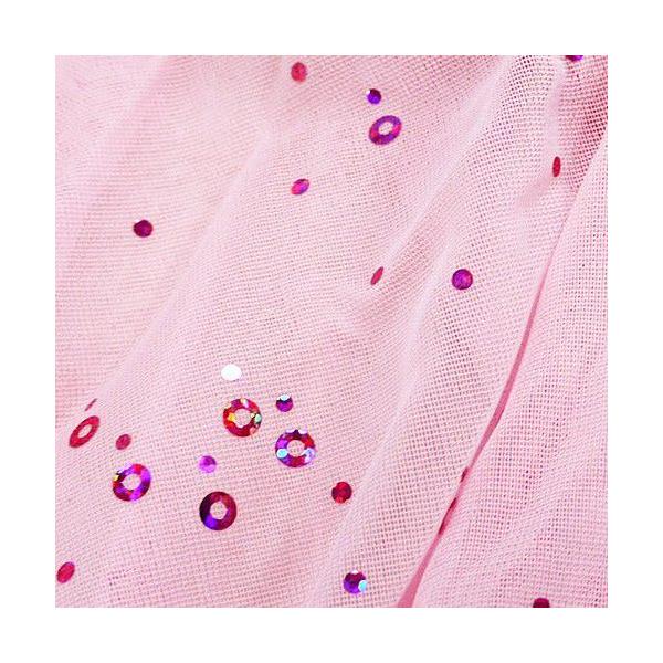 スパンコールがスカートとパフスリーブに散りばめられて、