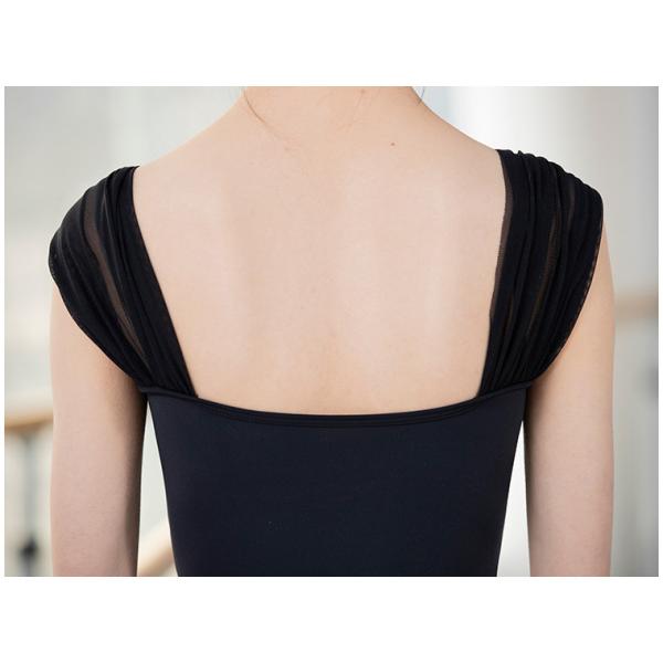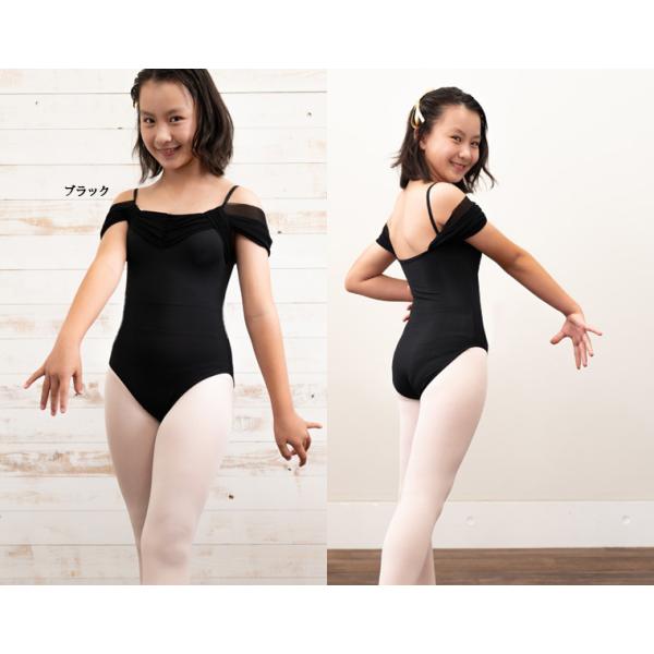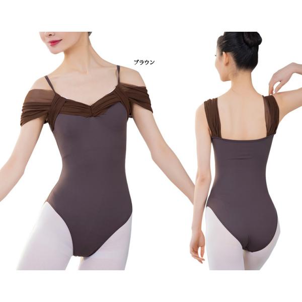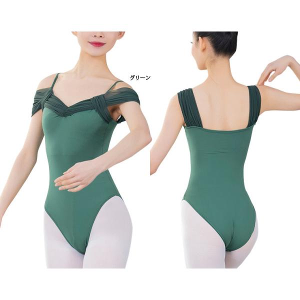 ふんわりメッシュストラップがとっても可愛いオフショルダーレオタード。