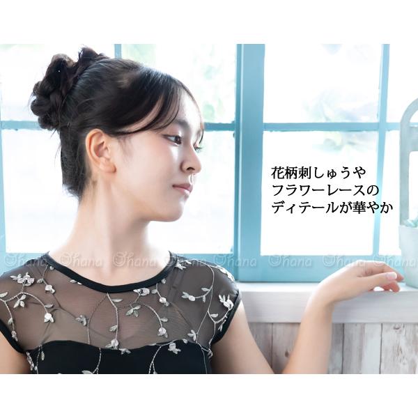 バレエレオタード ジュニアから大人用 フレンチスリーブ 花柄刺しゅう パッドポケット付