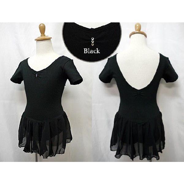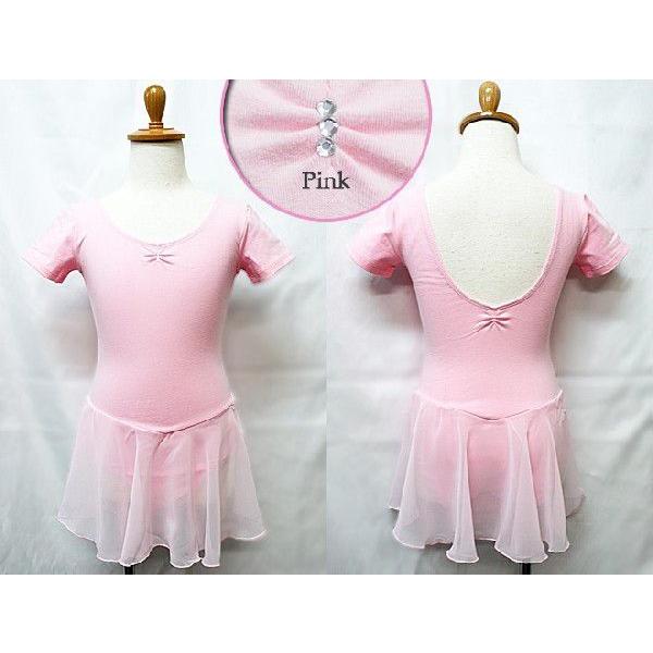 バレエレオタード 子供用 スカート付 ラインストーン 半袖
