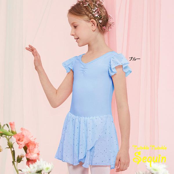 バレエレオタード 子供用 スパンコールスカート付 股下スナップボタン