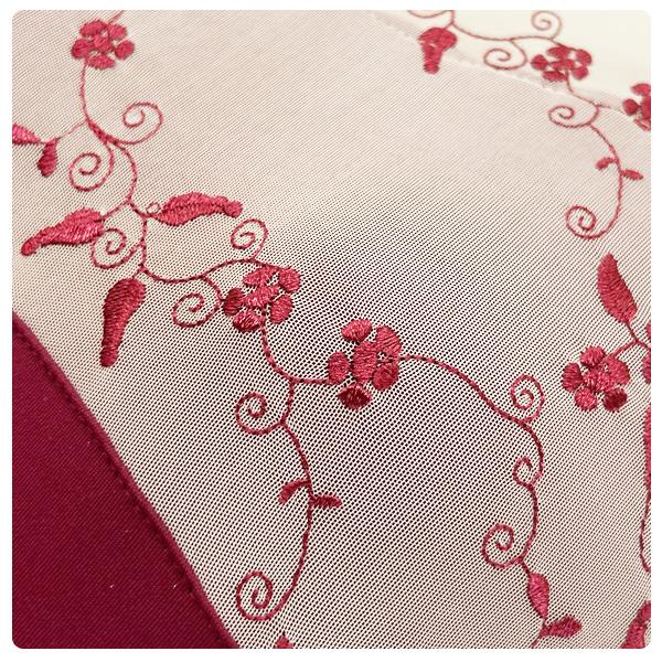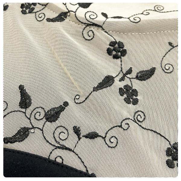 胸元から背中にかけて透け感のあるメッシュ生地に可愛いフラワー刺繍が