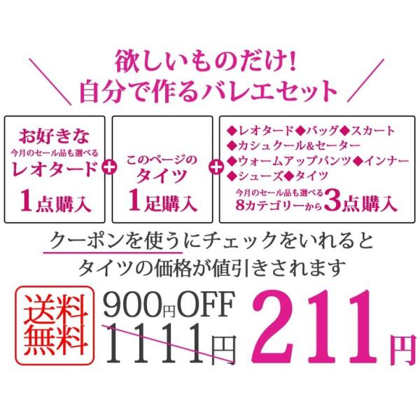 バレエ5点セット専用タイツ レオタード1着と対象商品3点同時購入用日本製穴なしタイツ クーポンで900円割引