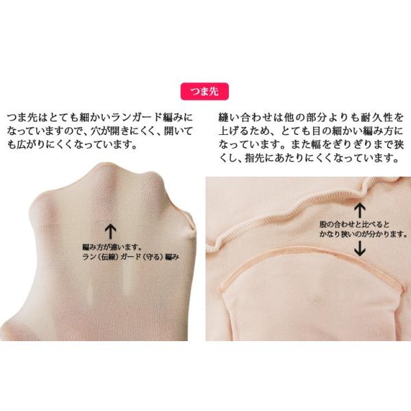 つま先はランガード編みで、伝線が広がりにくい。