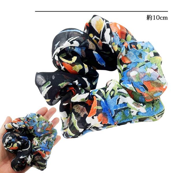 花柄プリントのシフォンシュシュ ヘアゴム ハンドメイド【プリマ・ブルーム】日本製