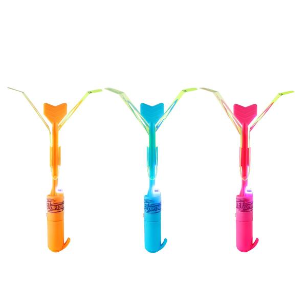ロケット花火のように打ち上がり、くるくる回ってゆっくり落ちてくる! LED付きロケットコプター!