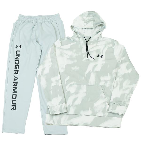 スウェット上下 メンズ フリース パーカー アンダーアーマー プルオーバー フード 裏起毛 セットアップ ホワイト 白 50542