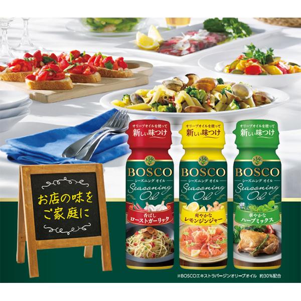 BOSCOエキストラバージンオリーブオイルと、オイルに溶け込む素材の香りが織りなすシーズニングオイル。