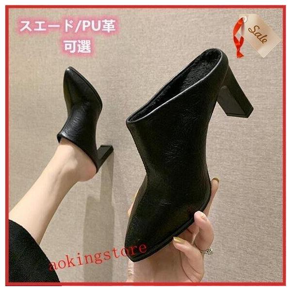 新ファッション爆買いセール秋冬PU革ミュールとんがりトウミュールスリッパヒールサンダルチャンキーヒールレディースサンダル