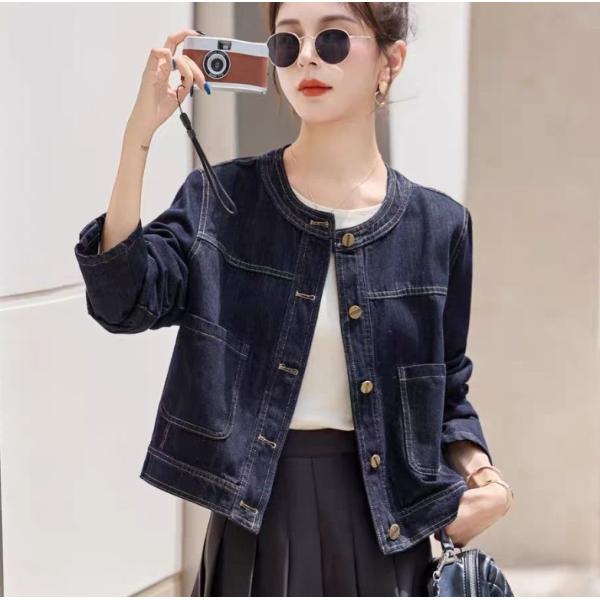デニムジャケット レディース Gジャン アウター ノーカラー ジャケット ジージャン 羽織 ヴィンテージ スリム ゆったり 無地 韓国風 春秋 通勤
