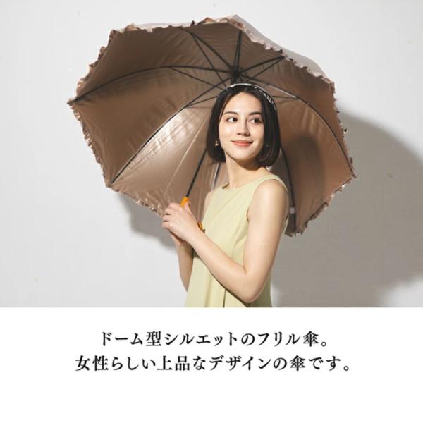 日傘 晴雨兼用傘 長傘 ベージュ 完全遮光 遮光率 100% おしゃれ フリル UVカット 丈夫 頑丈 55cm 長傘 完全遮光 遮光率 おしゃれ 送料無料
