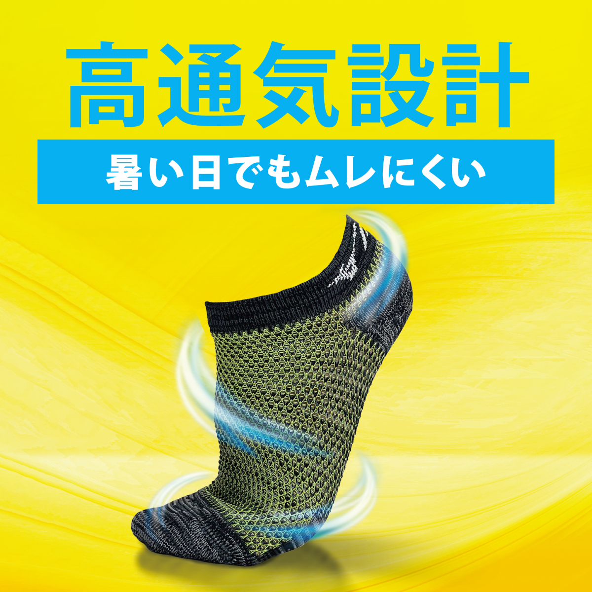 全体に速乾性の高いドライ素材を使用し、足もとの汗ムレを軽減。