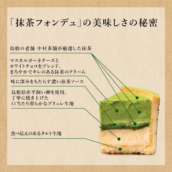 さくっとしたタルトに、とろりとしたブリュレと抹茶クリームの食感、抹茶の香りをお楽しみください。