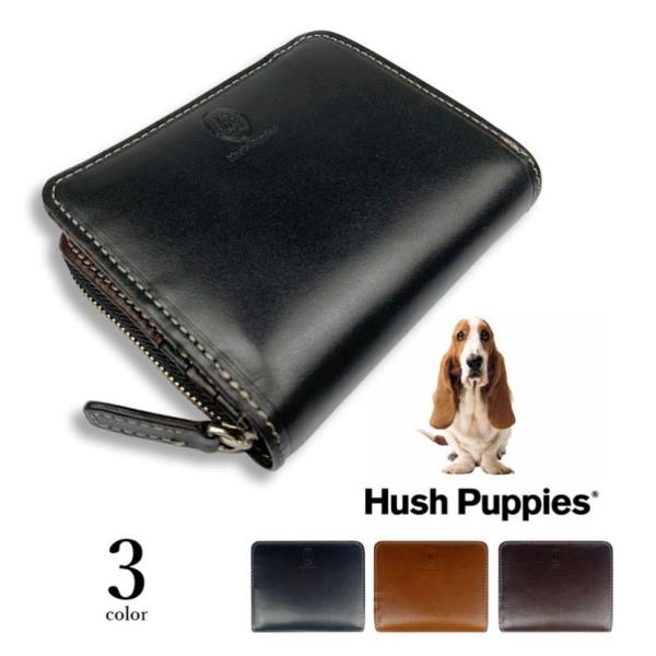 全3色 Hush Puppies ハッシュパピー リアルレザー 二つ折り財布 ショートウォレット ラウンドファスメンズ レディース ギフト プレゼント 父の日 送料無料