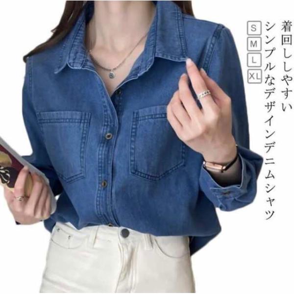 デニム レディース 羽織り ブラウス デニムシャツ ボタンシャツ シャツ 長袖 おしゃれ かっこいい ライトアウター 襟付き デニム 柔らかい 着痩せ