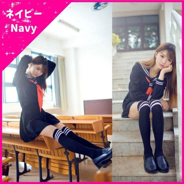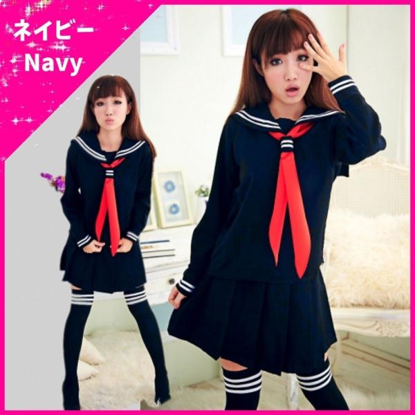 セーラー服 コスプレ 女子高生 学生服 制服 冬服 長袖 紺 白 ハロウィン ネクタイ付き コスプレ コスチューム
