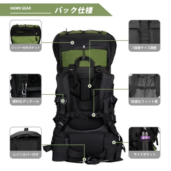 [HAWK GEAR(ホークギア)] バックパック 80L 大容量 防水 アウトドア 防災 災害 登山 旅行 レインカバー ザック