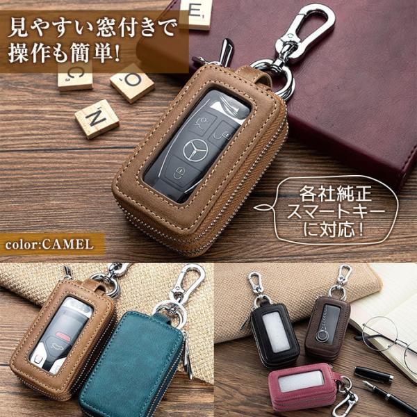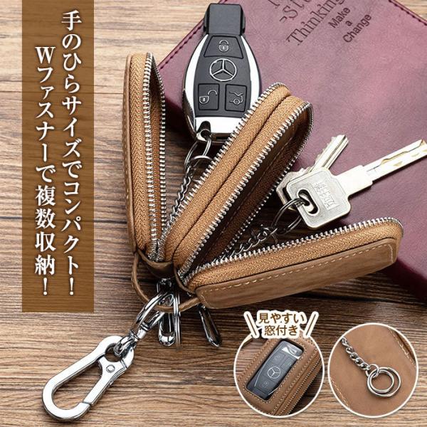 キーケース スマートキー上質牛革 車鍵 クリア窓付ダブルポケット メンズ レディース おしゃれ コンパクト ダブル スズキ 日産 トヨタ ホンダ シンプルおしゃれ
