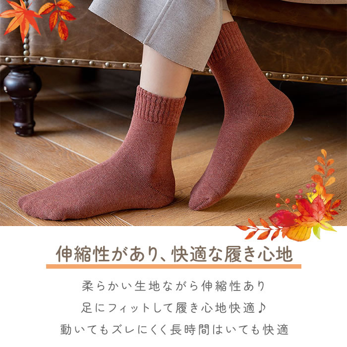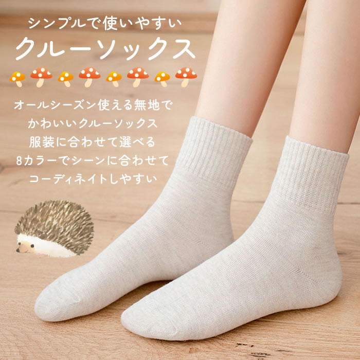 シンプルで使いやすい無地のレディースクルーソックス。程よい厚みで快適な春秋用の靴下。8カラーの無地の靴下でシーンに合わせて選べてコーディネイトしやすい。厚すぎず薄すぎない生地で春秋だけでなく夏や冬にもお使いいただけます。柔らかい生地で履き心地も快適。伸縮性に優れ足にフィットしてズレにくい。通気性もよくあつくなりすぎずオールシーズンご利用いただけます。