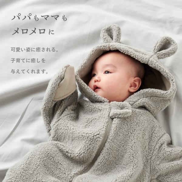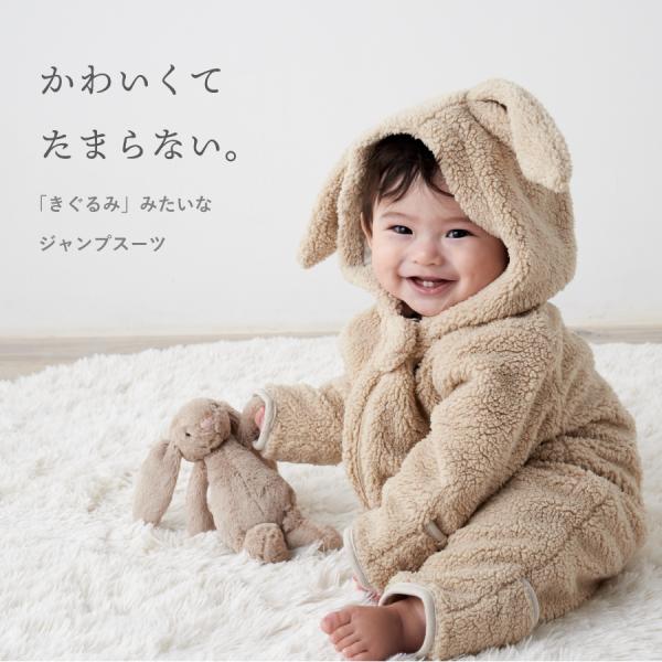 【CLEARANCE SALE】ジャンプスーツ ベビー カバーオール 耳付き くま うさぎ 防寒着 着ぐるみ フード 裏ボア アウター ロンパース ベビー こども 赤ちゃん emoka