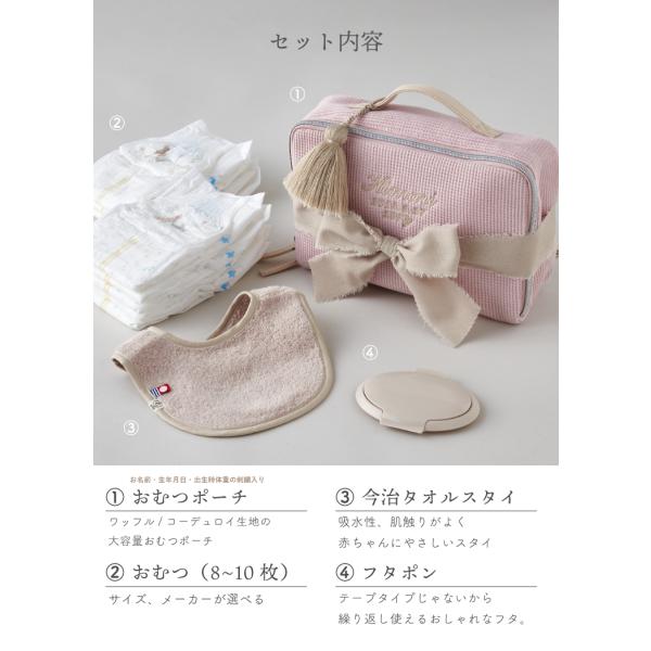 おむつケーキ 出産祝い おむつポーチ 今治タオル スタイ フタポン おむつ 女の子 男の子 ギフトセット 名入れ 刺繍 名前入り 赤ちゃん 新生児 御出産祝い emoka