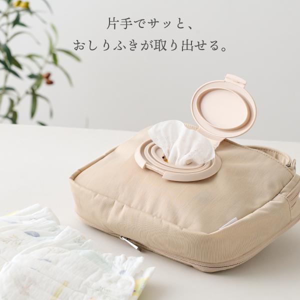 おむつポーチ おむつケース おしりふきポーチ フタ付き おむつ替えバッグ おしりふきケース おしりふきケース一体型 おむつバッグ フタポン 圧縮 シンプル emoka